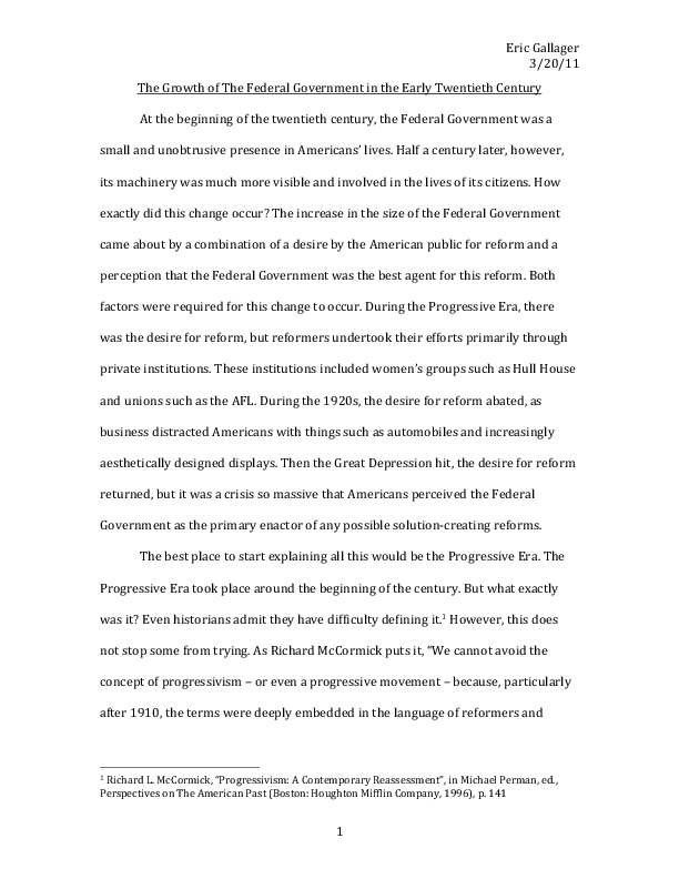 The Growth of the Federal Government in the Early Twentieth Century