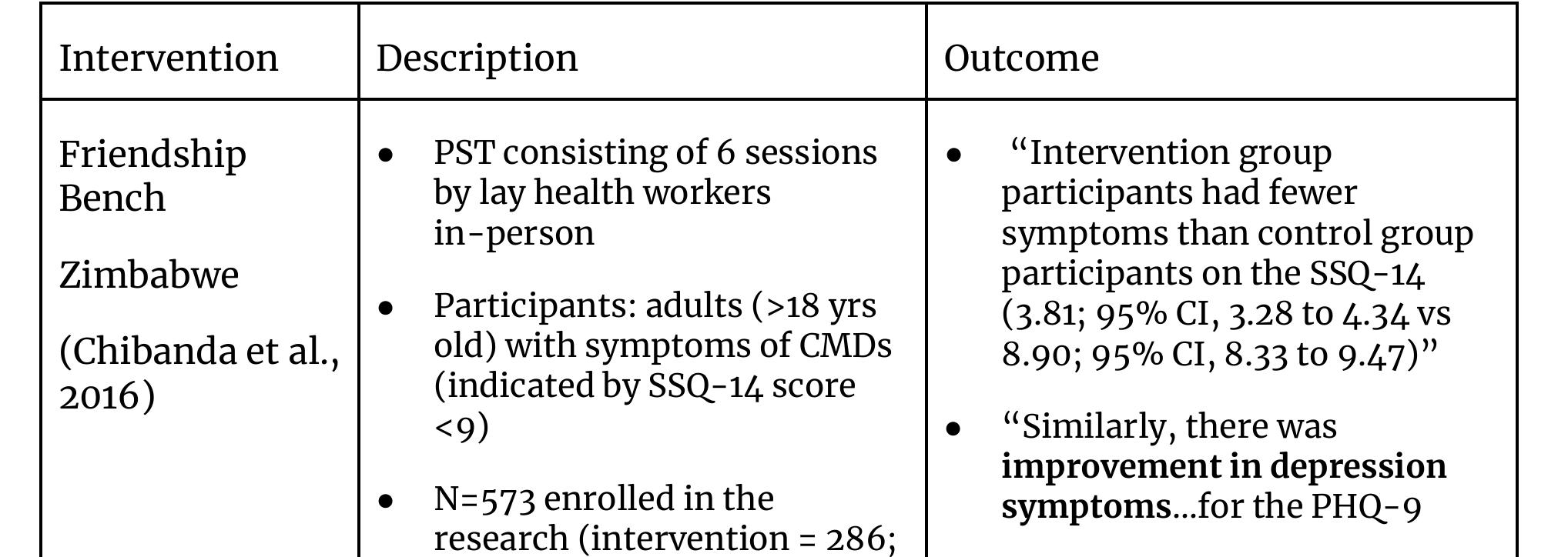 counseling by trained lay peer counselors mental health outcomes (SSQ