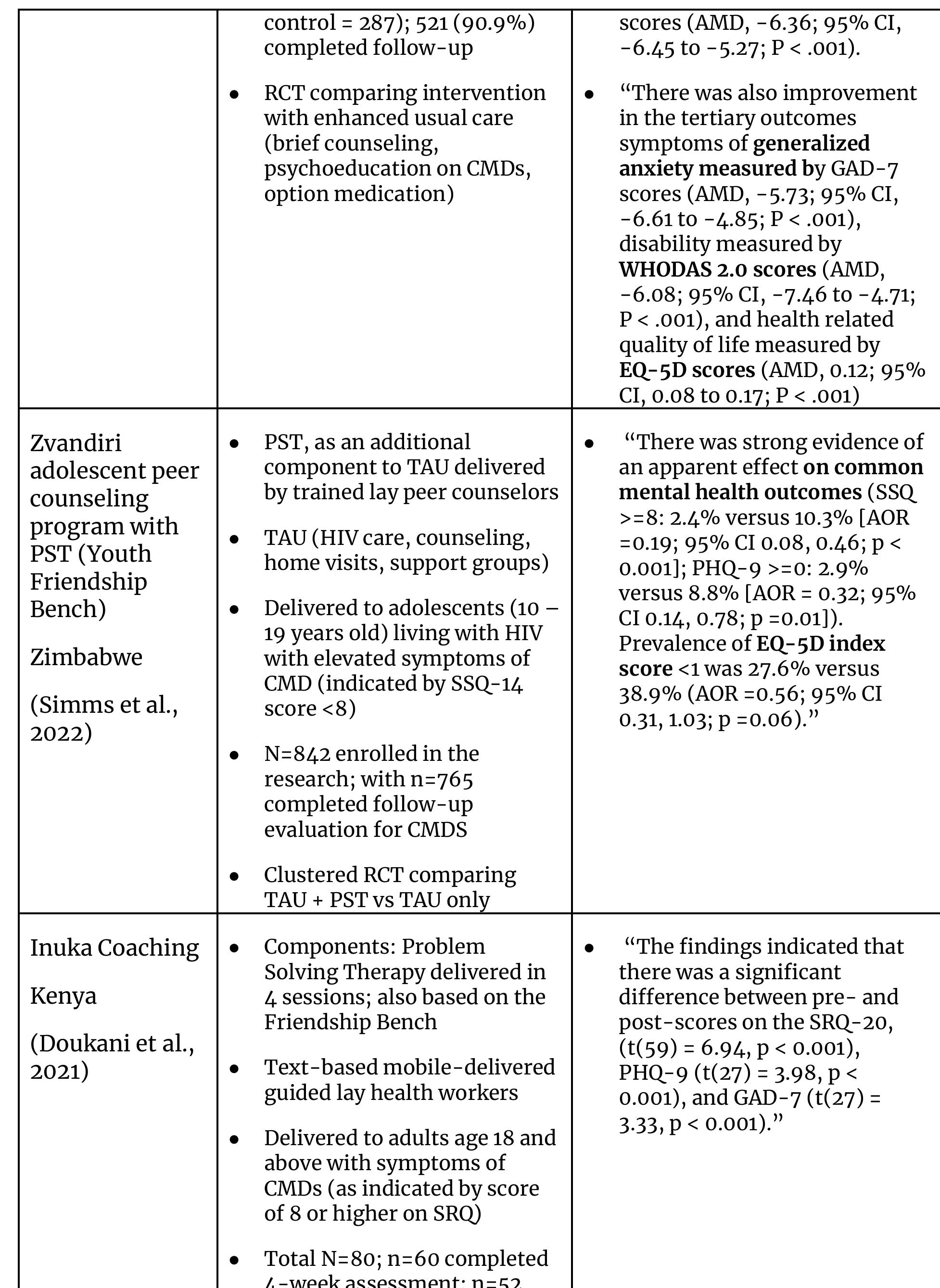 Zvandiri ● PST, as an additional ● “There was strong evidence of