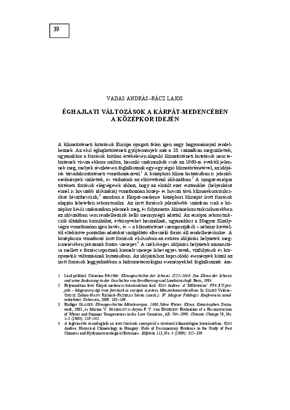 ÉGHAJLATI VÁLTOZÁSOK A KÁRPÁT-MEDENCÉBEN A KÖZÉPKOR IDEJÉN 41