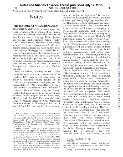 The Future (New York, 2013), 239. Huxley, ‘Transhumanism’, 13–17, definition on p. 17.