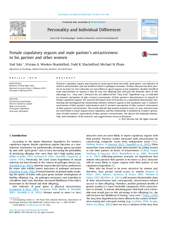 Female copulatory orgasm and male partner’s attractiveness to his partner and other women