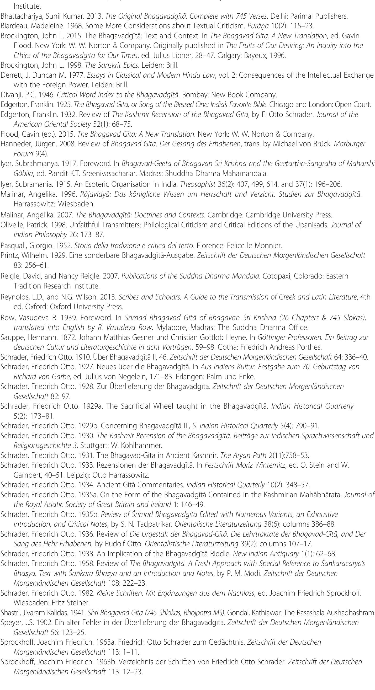Schrader, Friedrich Otto. 1930. The Kashmir Recension of the Bhagavadgītā. Beiträge zur indischen Sprachwissenschaft und