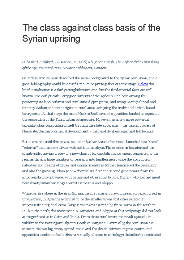 The class against class basis of the Syrian uprising