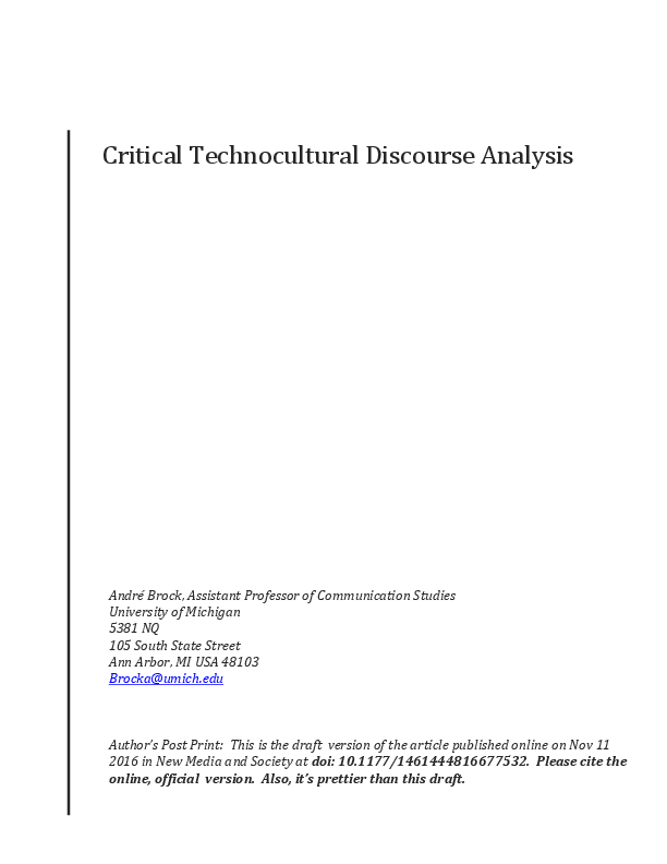 "CTDA": Critical Technocultural Discourse Analysis [Draft Version]
