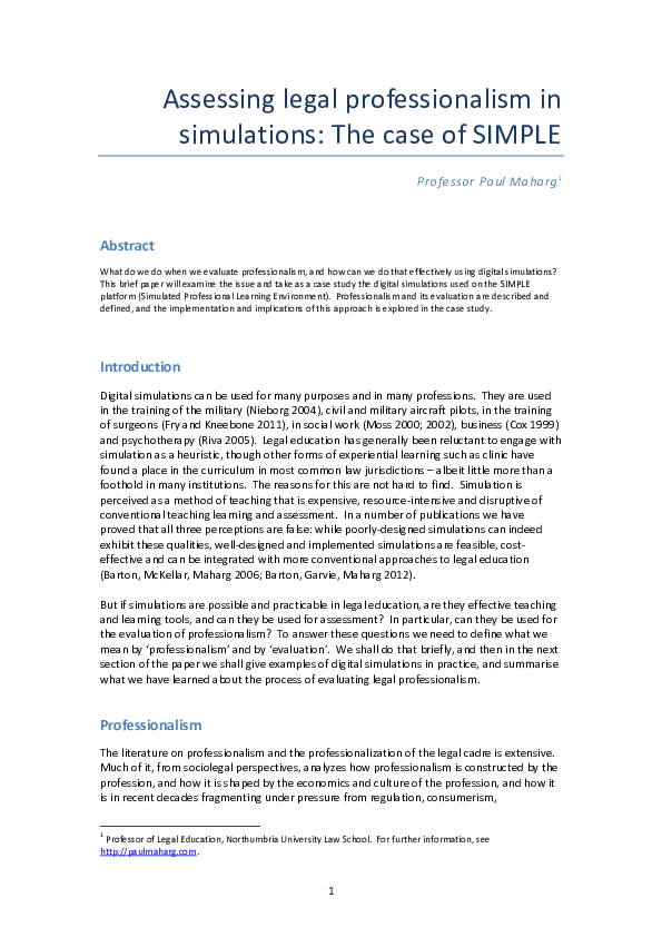 Assessing legal professionalism in simulations: The case of SIMPLE