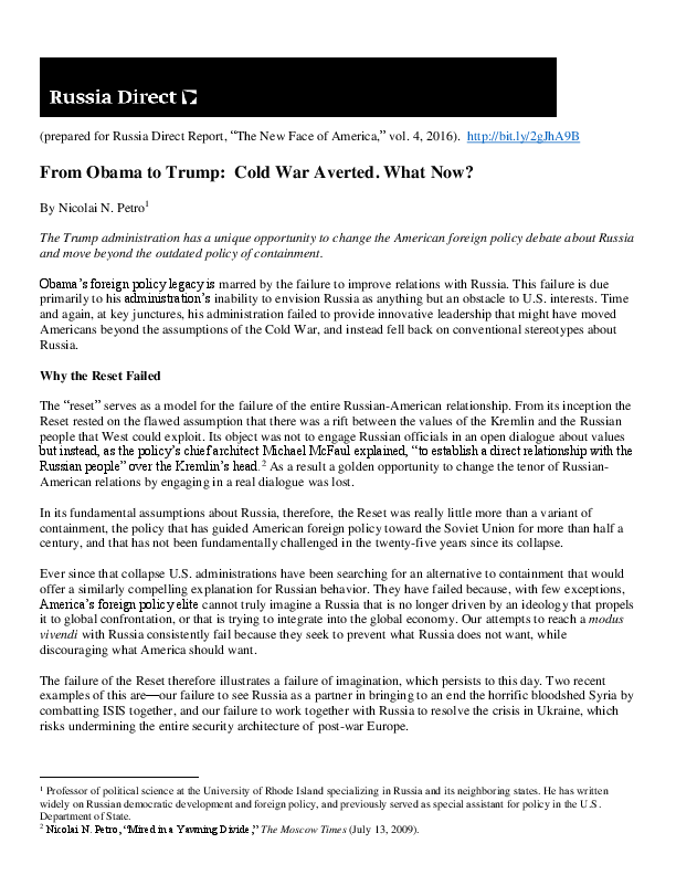 (prepared for Russia Direct Report, “The New Face of America,” vol. 4, 2016). http://bit.ly/2gJhA9B