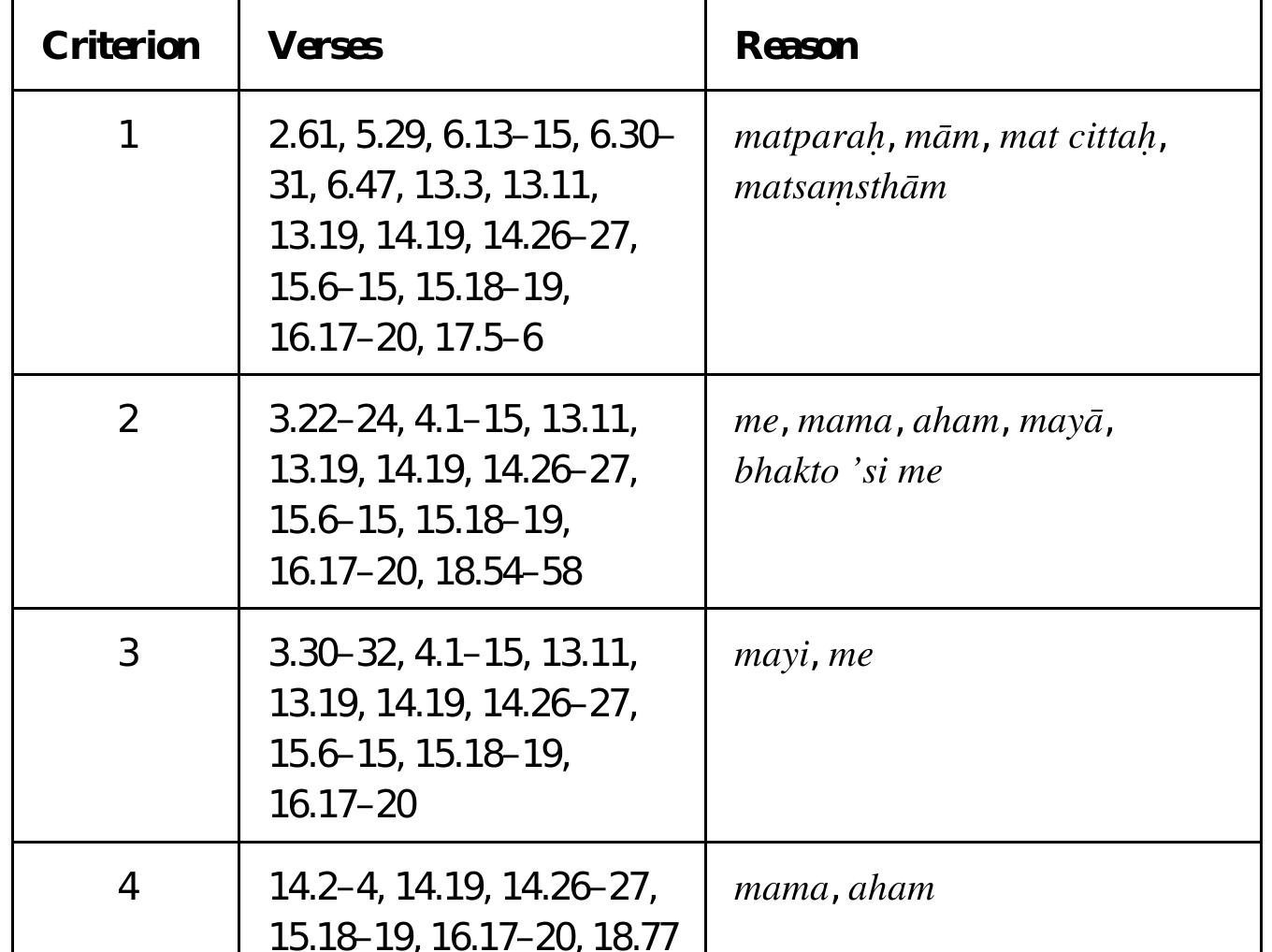 the criteria proposed for identifying layers in the Bhagavad Gtå do not