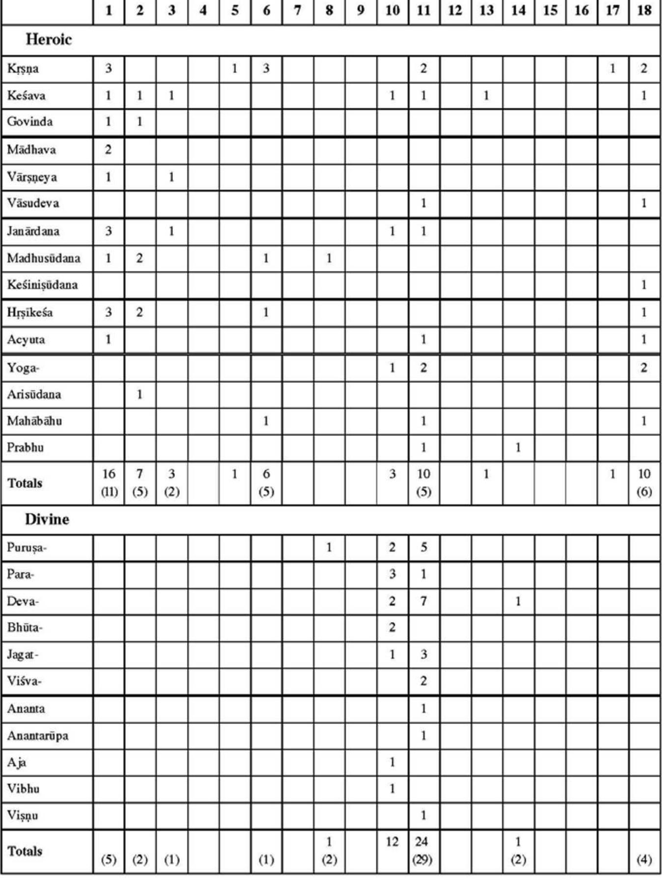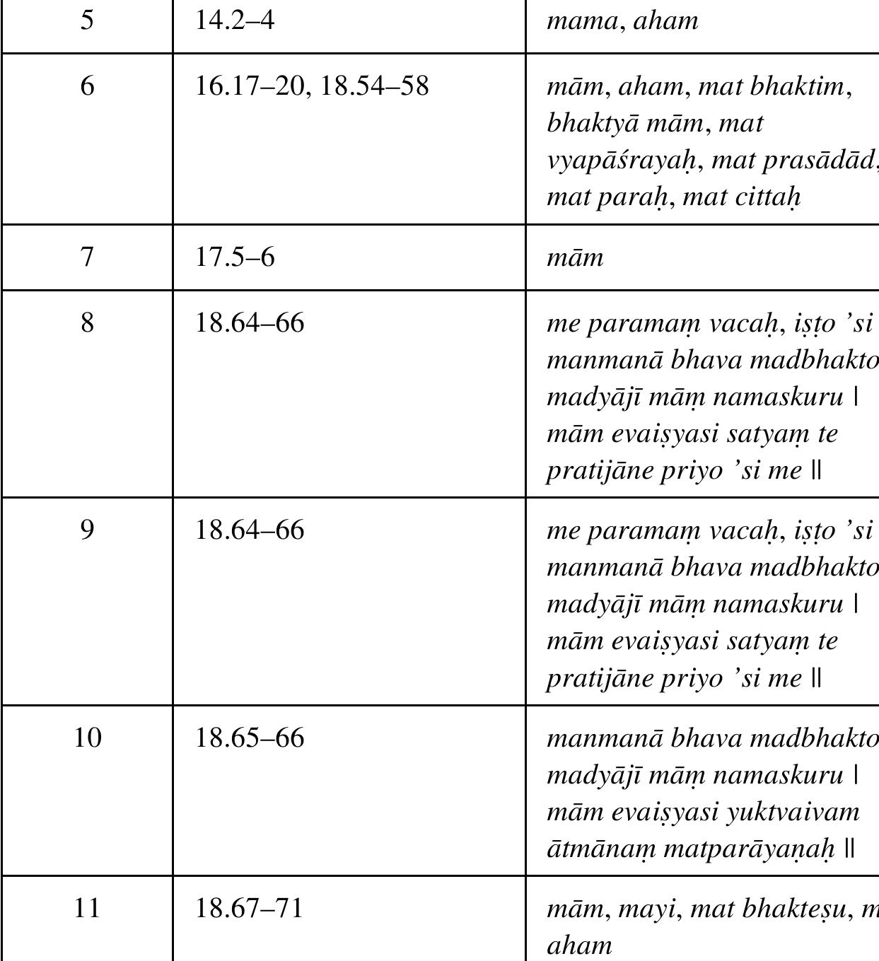 Bhagavad Gtå: (1) “theism,” (2) names and epithets of K®‚~a, (3) repeti-