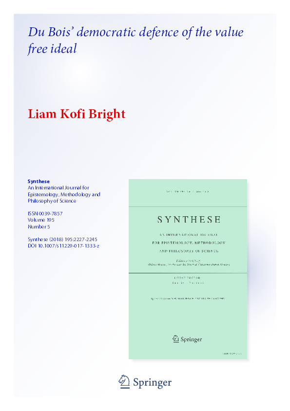 Keywords W. E. B. Du Bois · Value free ideal · Epistemic democracy