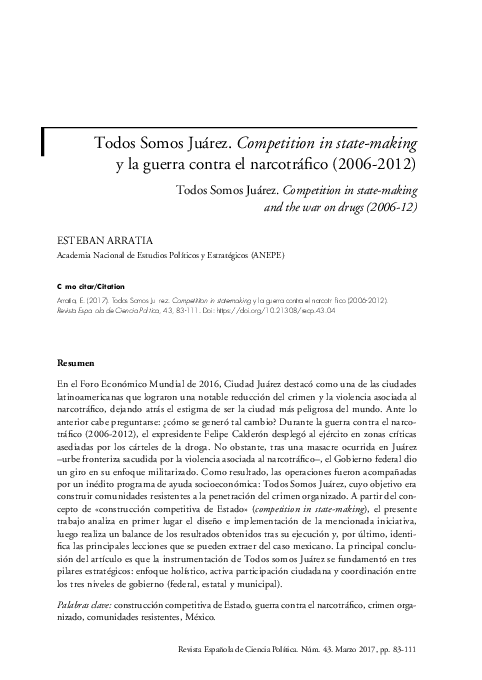 Arratia, E. (2017). Todos Somos Juárez. Competititon in state-making y la guerra contra el narcotráfico (2006-2012).