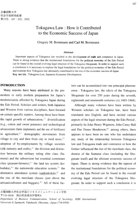 188 Tokugawa Law : How it Contributed to the Economic Success of Japan