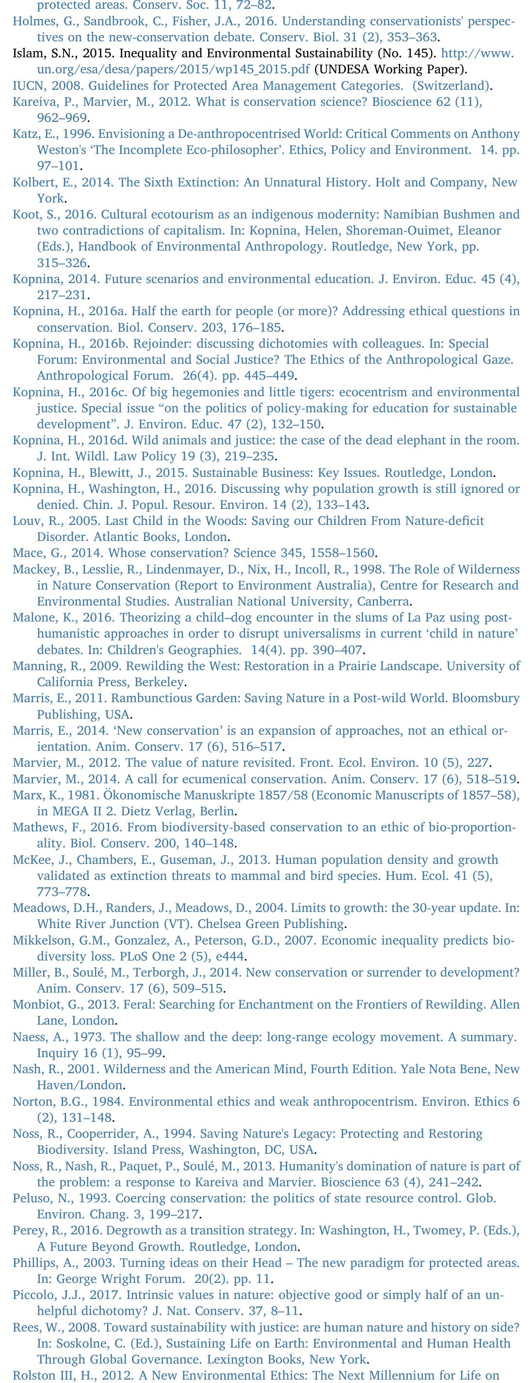 - Kopnina, H., 2016a. Half the earth for people (or more)? Addressing ethical questions in conservation. Biol. Conserv. 203, 176-185.
