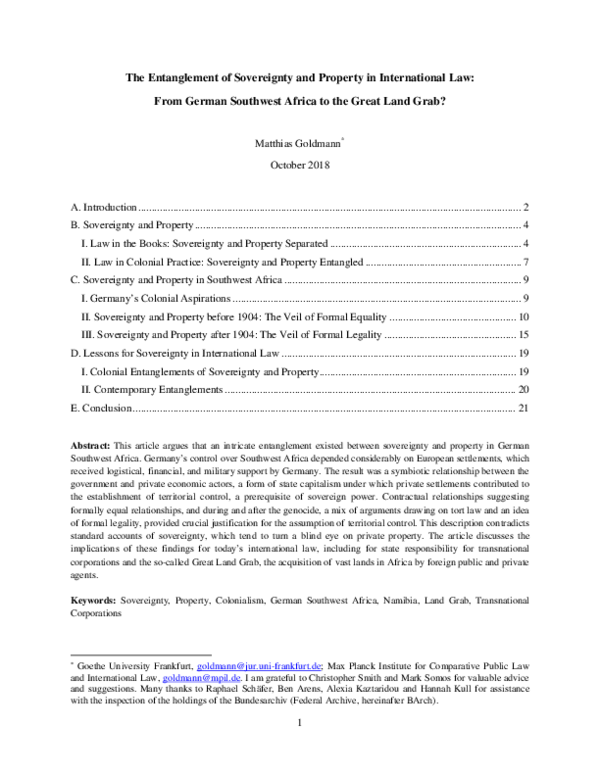 The Entanglement of Sovereignty and Property in International Law: From German Southwest Africa to the Great Land Grab