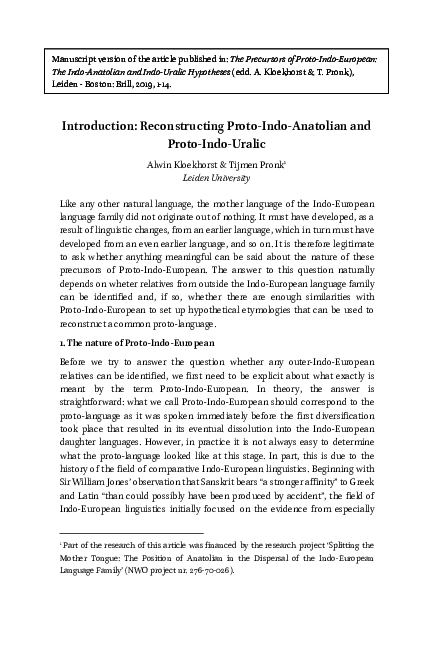 The Precursors of Proto-Indo-European: The Indo-Anatolian and Indo-Uralic Hypotheses (Alwin Kloekhorst & Tijmen Pronk, eds.). Leiden-Boston: Brill., 2019