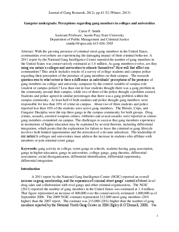 Gangster undergrads: Perceptions regarding gang members in colleges and universities