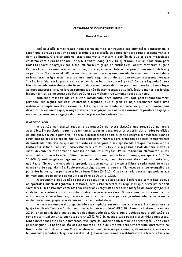 Os dons espirituais cessaram? ~ Donald MacLeod