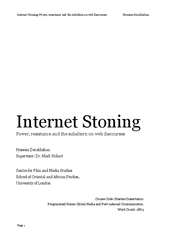 Internet Stoning: Power, resistance and the subaltern on web discourses Hossein Derakhshan