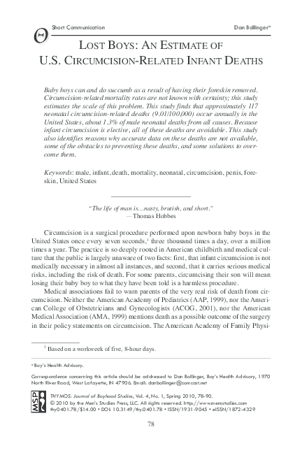 Lost Boys: An Estimate of U.S. Circumcision-Related Infant Deaths