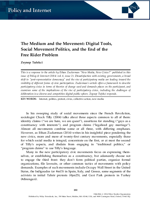 Zuckerman, E. 2014. “New Media, New Civics?” Policy & Internet 6 (2): 151–68.