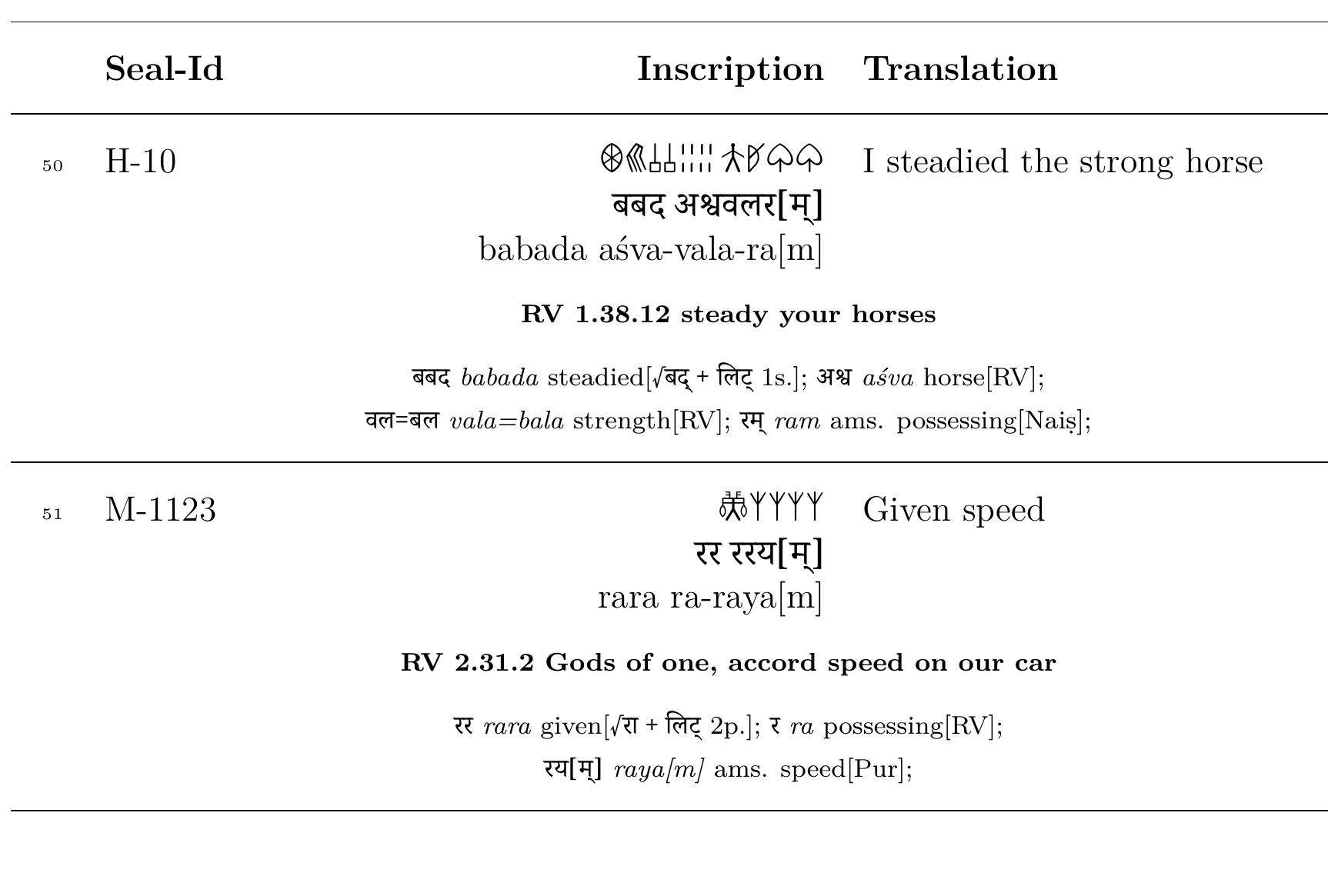and vowels. Indus inscriptions are in grammatically correct post-Vedic Sanskrit.