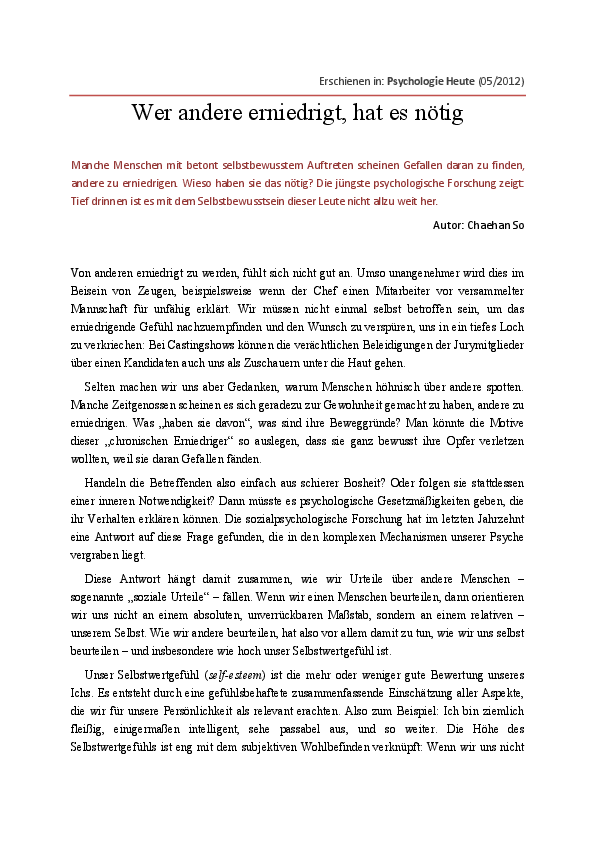 2012-05 PsychologieHeute - Wer andere erniedrigt, hat es nötig