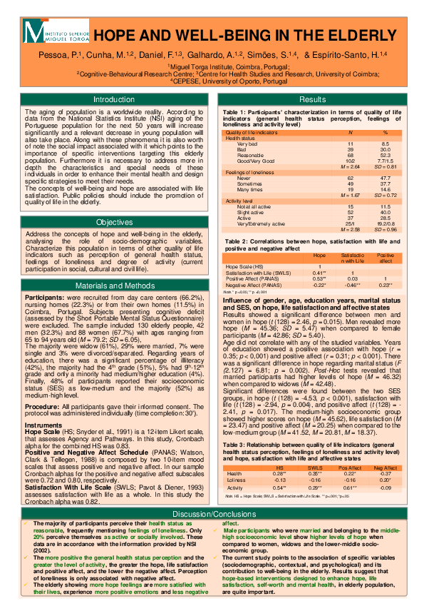 were excluded. The sample included 130 elderly people, 42 hope (M = 45.36; SD = 5.47) when compared to female