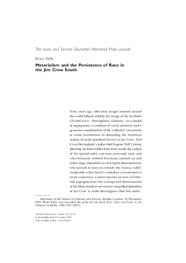 Materialism and the Persistence of Race in the Jim Crow South (Deutscher Prize Lecture)