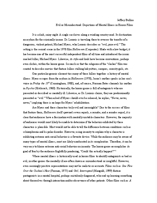 Evil or Misunderstood: Depictions of Mental Illness in Horror Films
