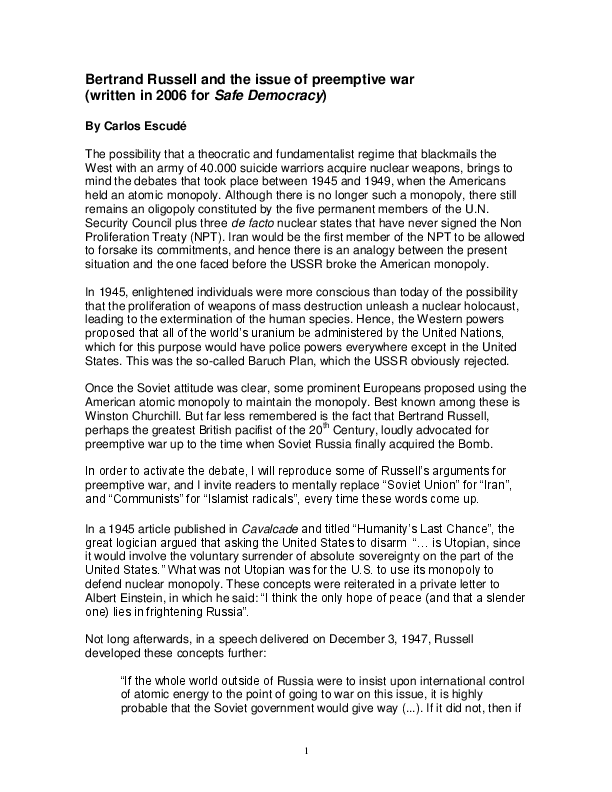 preemptive war up to the time when Soviet Russia finally acquired the Bomb.